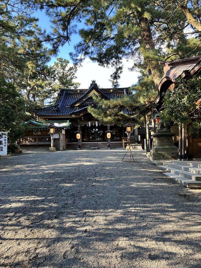 防風林の松が沢山あるのは、海沿いの神社の風物詩ですね。