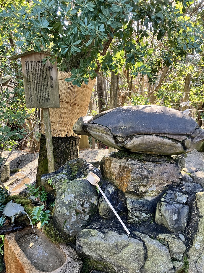 左右左と亀の背中を撫でてから神前に祈ると延命長寿と末広がりの幸福が訪れるとのこと。
