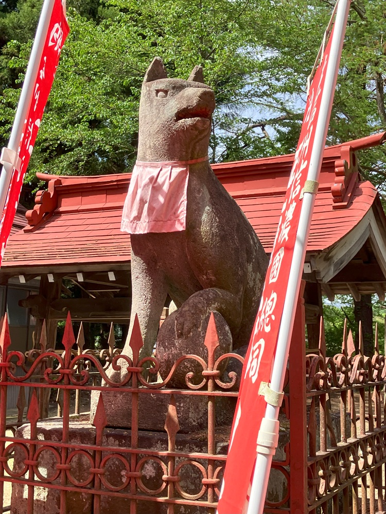 こちらも同じく勇ましい顔立ちで、玉をしっかりと……本当、サッカー選手系狐像が多いな、今回の長野旅。子狐像の方は親子感が満載だったが、こちらは一度思ってしまったら、ゴールキーパーに思えてきます。