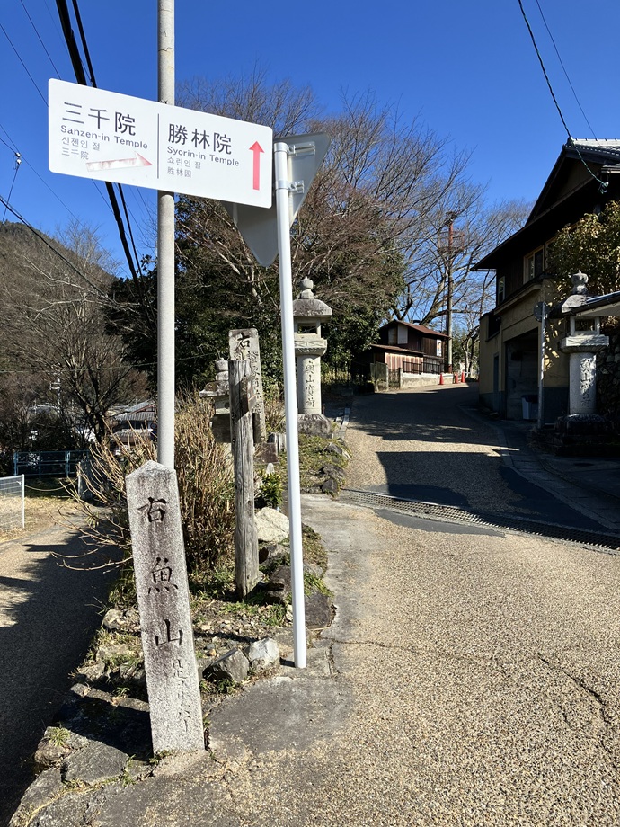 この三千院の看板がある道から出世稲荷神社へ行けます。