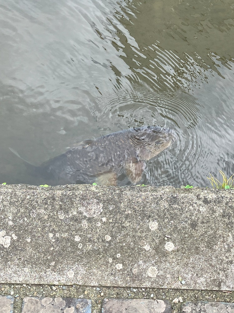 穏やかな水路で泳いでいるのは鯉。