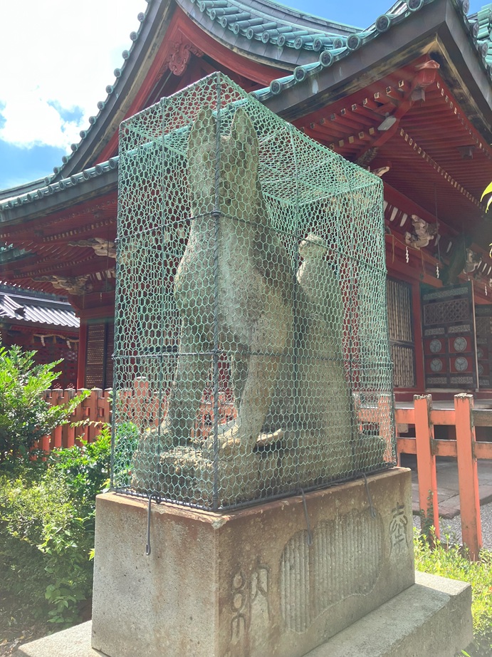 見れば見るほど、網という特徴が気になる狐像だなぁ。