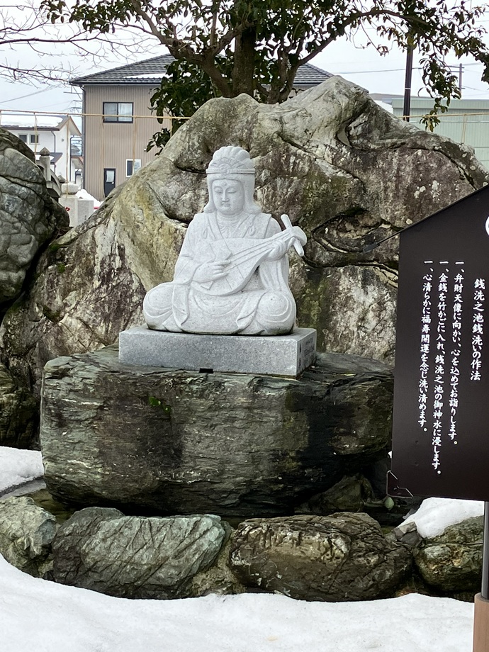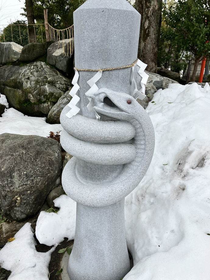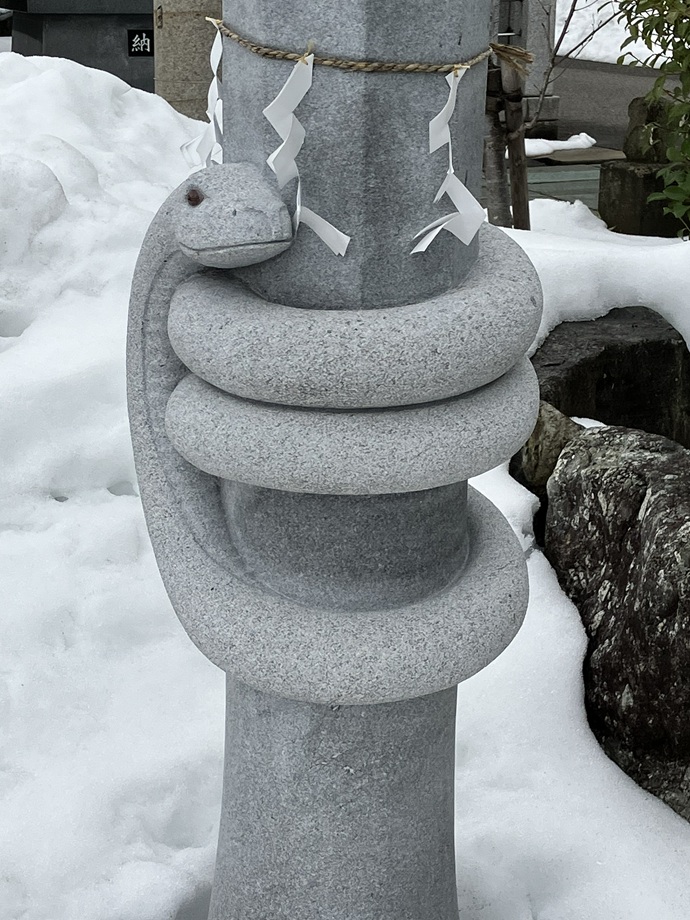 境内に入ってすぐ左手側にあったのが、弁財天と蛇像。