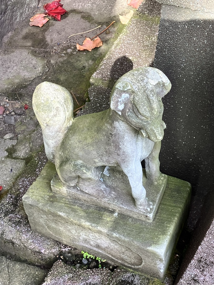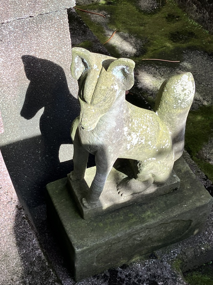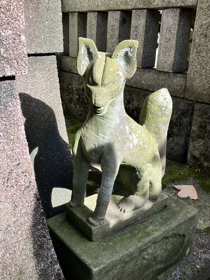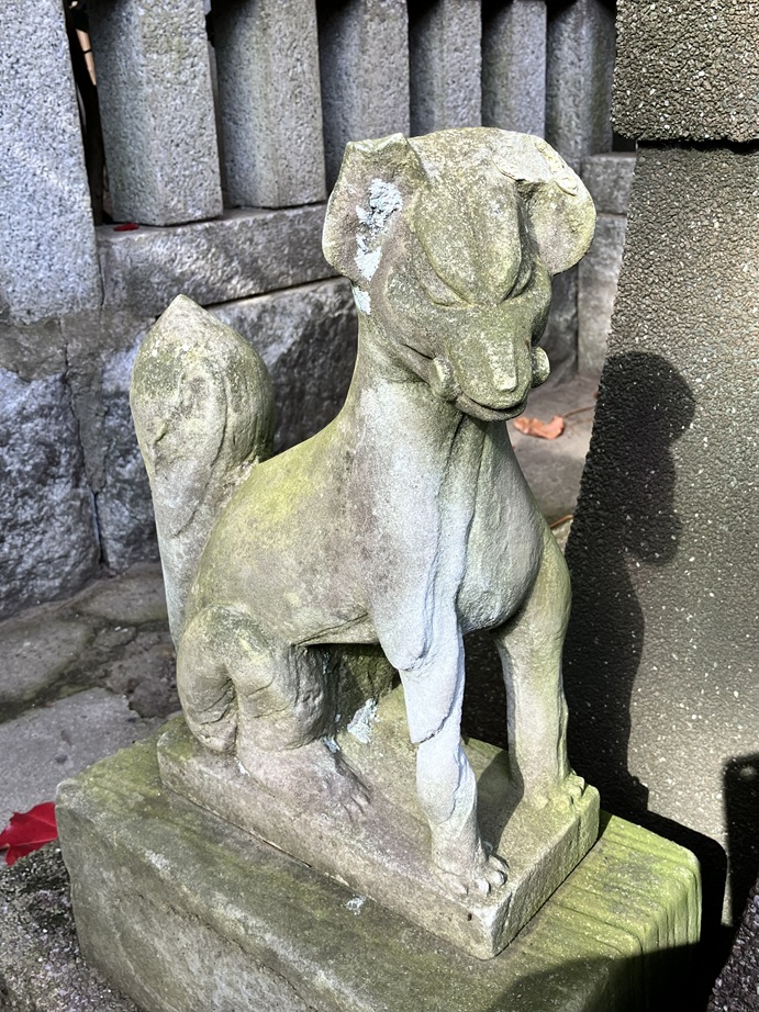 似たサイズで似たようなデザインの狐像は見た記憶があるのだけど、なんだこの独特の削られ方は。割れてヒビが入って……というより、溶けてる?