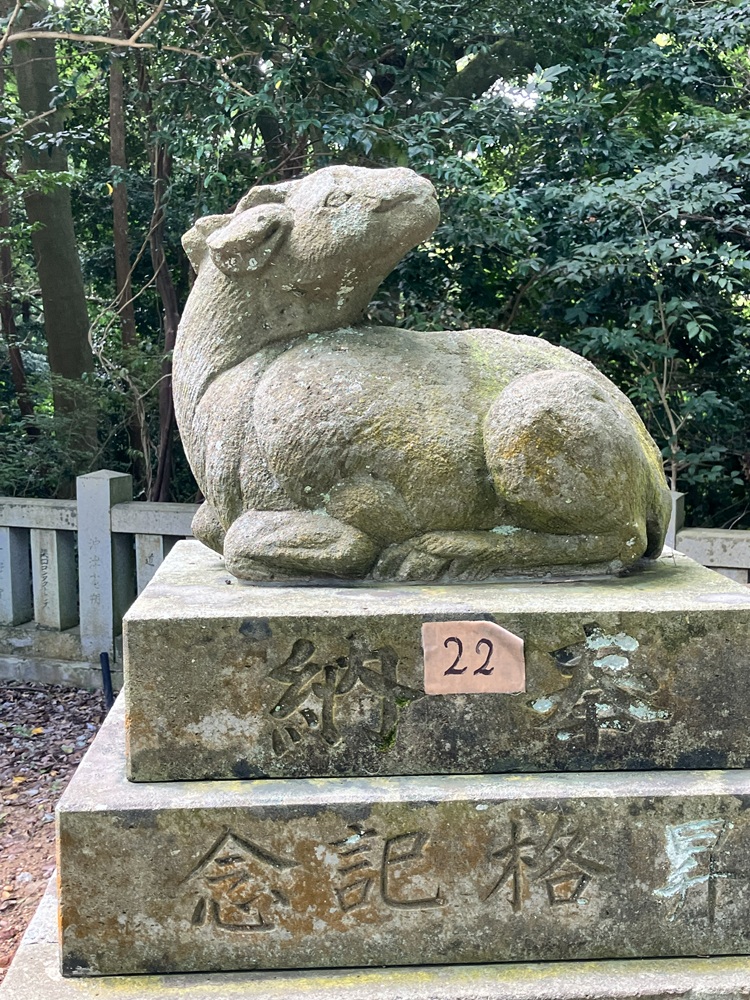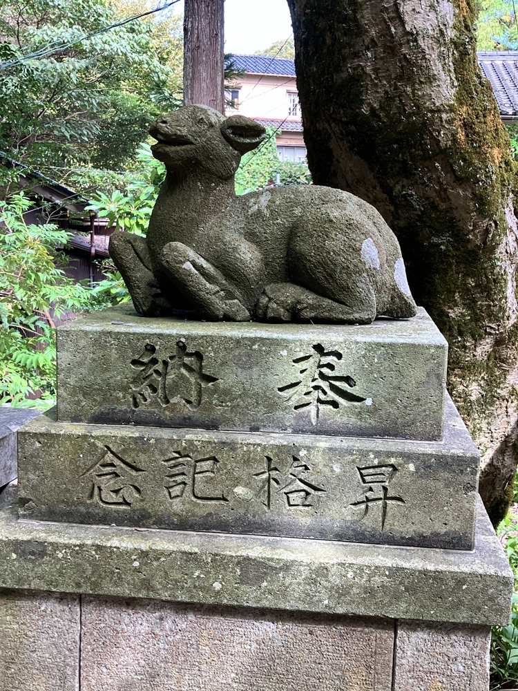 一見するとヤギに見える。名物の狛犬よりも、この二体は一体何だろうという疑問が大きかったですね。昇格記念とあるし、寄贈した人の干支とか? そうなると牛か羊か。