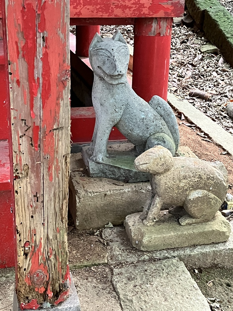 大きい方……と、言っても十分小さいのだけど。このサイズは作者好みの面白いデザインにしやすいのかな。沖縄のゆるいシーサーのデザインが感覚的に近い? 福井県の伏見稲荷のも近いかな。