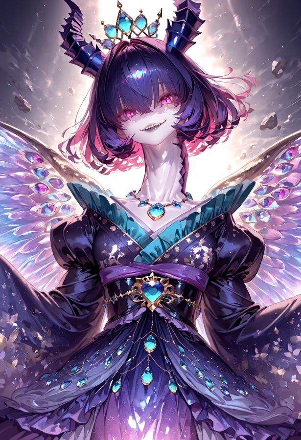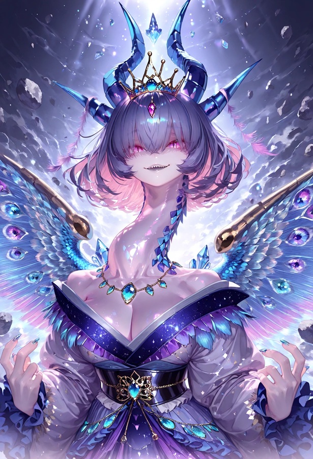 今回は具体的な宝石名は入れず、宝石のような輝きを各所に持たせる方向で作成しました。人間ベースの体なのは、バリエーションを持たせるためです。